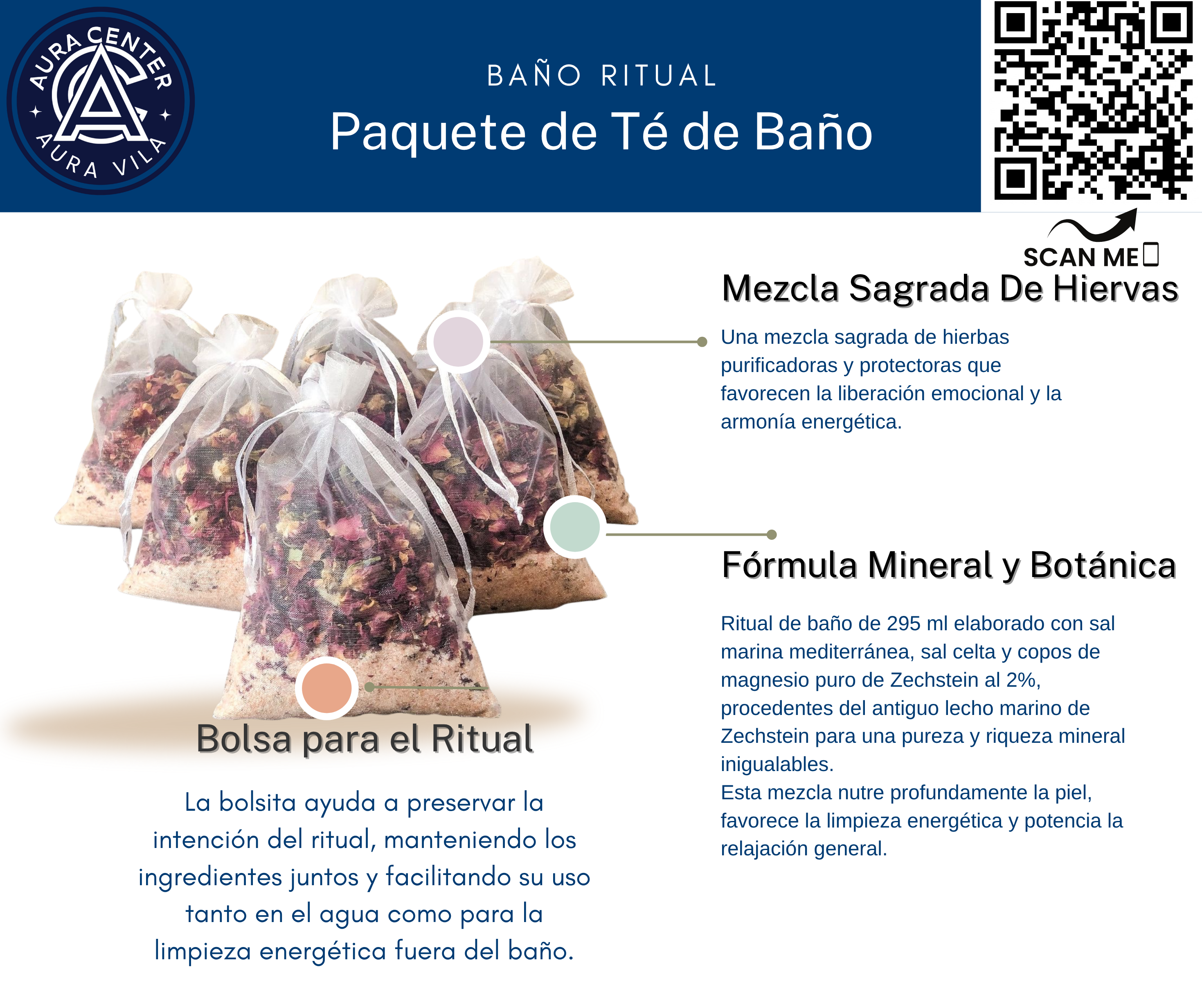 Convierte tu baño en un espacio de sanación profunda con nuestro Baño de Sal Ritual, una mezcla premium de sales ancestrales, minerales puros y aceites esenciales terapéuticos de Aura Center.Cada bolsa está cuidadosamente elaborada para equilibrar tus emociones, purificar tu energía y elevar tu bienestar físico y espiritual.